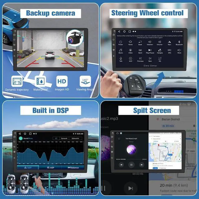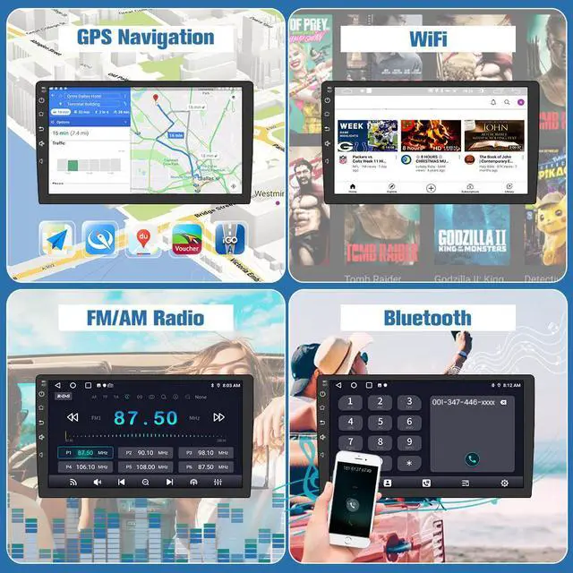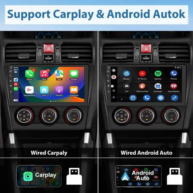 Wireless CarPlay & Android AutoA smart way to use your phone in the car, simply connect your iPhone/Android phone to the Android car radio via Bluetooth. Use smart voice assistant or touch the display, you can get directions, make calls, send and receive messages, and enjoy music etc. A smarter, safer and more fun way to use your phone in the car, and keep you stay focused, connected and entertained.
