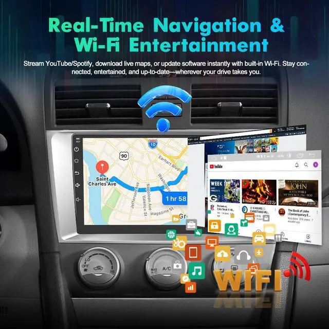 Support Full RCA Output & Split Screen: Double Din Android 12 Car Radio comes with video output and Supports split-screen function. Supports car headrest video output, your family or friends could enjoy videos in the backseat. Support split-screen function, you can enjoy different interfaces on the same screen at the same time, bringing you a pleasant driving journey