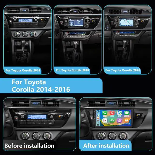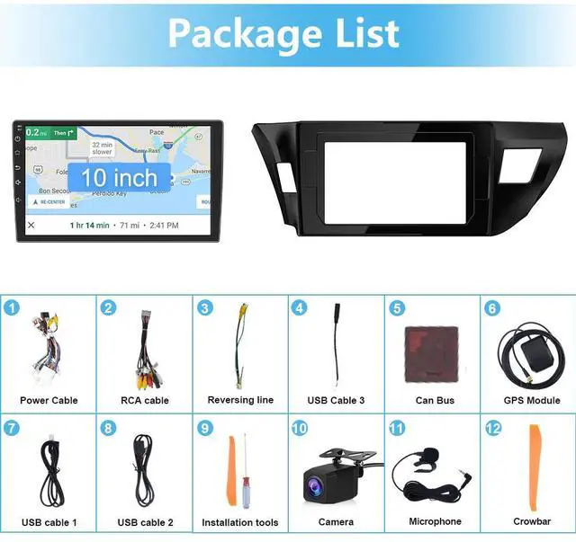 Android 13 Car Radio Car Radio for Toyota Corolla 2014 2015 2016. 10 inch HD Touch Screen, 2GB RAM + 32GB ROM. The touch response is sensitive, the operation sensing speed is fast, the color display has no color difference. enjoy high-definition colorful pictures, background brightness during the day and night can be customized to show you a wonderful picture while caring for your eyes