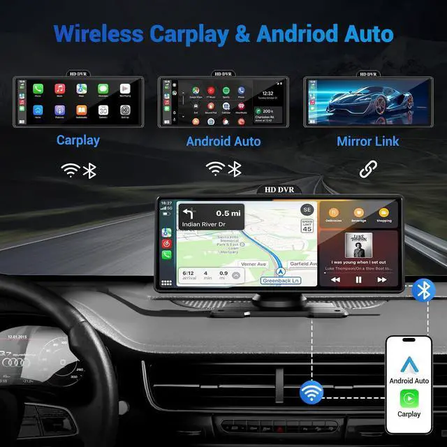 Online Maps & Real-time GPS Navigation: The portable Apple carplay screen provides accurate real-time location and GPS navigation without delay when connected to your phone. Allows you to use popular mapping apps such as Google Maps and Waze to provide real-time navigation ( phone connection required). In-car speaker voice navigation provides optimized, real-time route suggestions during traffic jams and lane changes, ensuring safety on the road