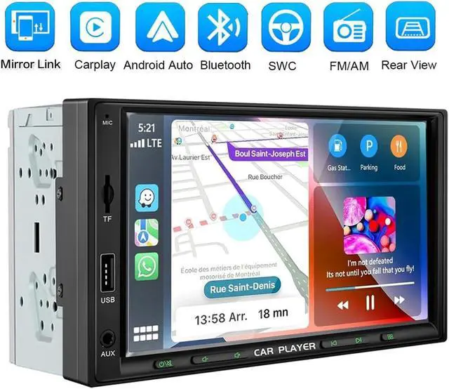7 Inch Double Din Car Stereo with Wireless Apple Carplay & Android Auto Navi Radio Head Unit with Touch Screen Bluetooth AM/FM Receiver/Mirror Link/Backup Camera/TF/AUX/USB Input