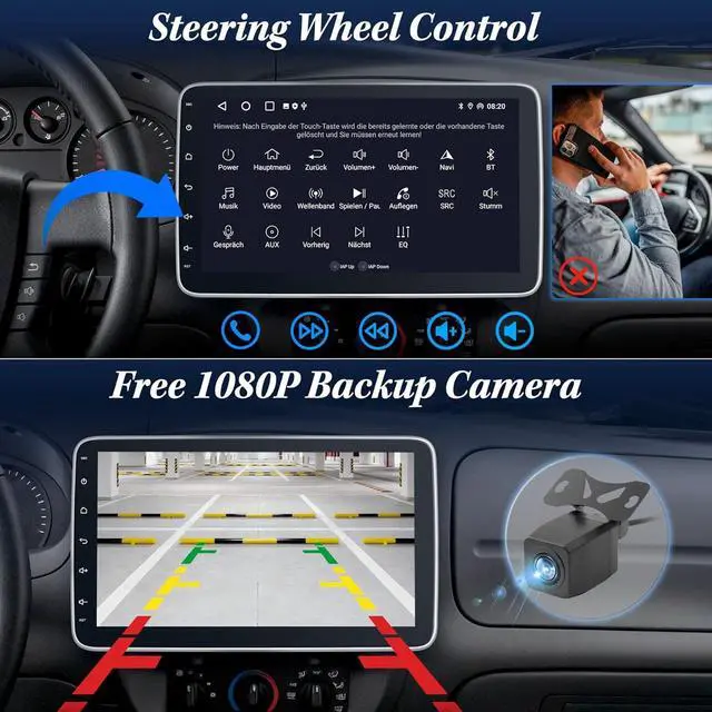 10.1" Rotatable & Detachable Touchscreen Enjoy ultimate flexibility with a large touchscreen that can be tilted and swiveled to suit your viewing angle, reduce glare, or for easy removal when needed. The responsive touch and intuitive menu of this car radio bluetooth make navigation and media control effortless, while vibrant 1280*720P HD resolution delivers crisp, clear visuals for maps, music, videos, and more. Perfect for a personalized, safe, and enjoyable in-car experience.