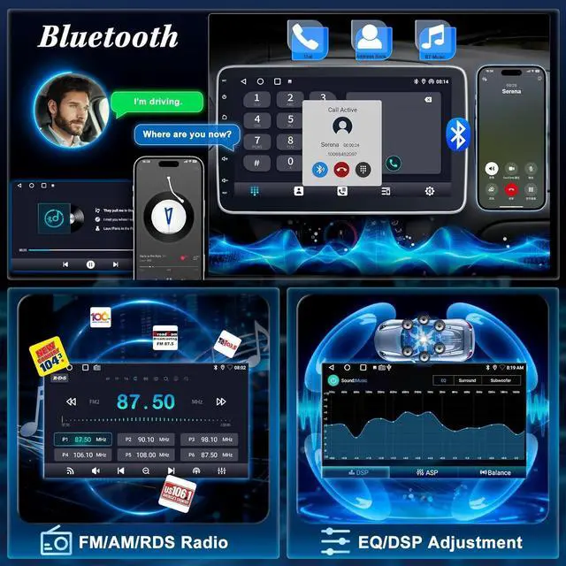 Premium In-Car Audio with ASP/DSP/Balance & Radio Upgrade your drive with this single din car stereo, featuring a built-in EQ equalizer, nine preset sound styles, subwoofer control and in-car sound distribution adjustment. Whether its music, videos or radio, enjoy crystal-clear audio tailored to your taste. This car audio receivers' radio function makes it easy to search stations, switch AM/FM and fine-tune frequenciesso you never miss live traffic updates, news or weather while on the road.
