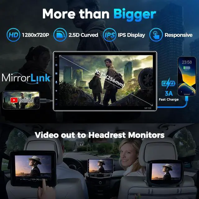 Immersive 10.1-Inch IPS Touchscreen: Compatible with most single/double din dash openings. Enhance your driving with a vivid HD display. Multi-angle adjustment ensures comfortable viewing. Wired MirrorLink connects iOS/Android devices, turning your car into an entertainment hub.