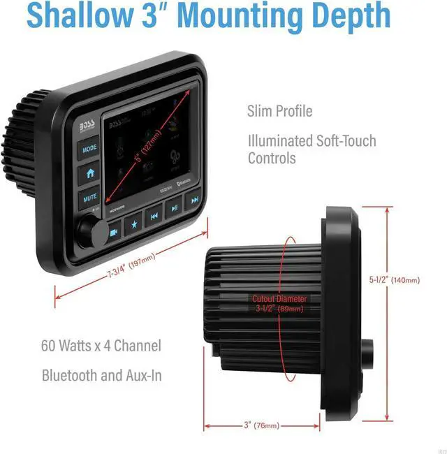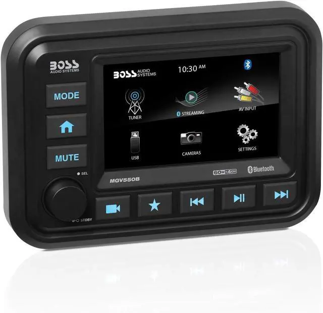 BOSS Audio Systems MGV550B Marine Gauge Receiver - Weatherproof, 5 Inch Touchscreen, Built-in Amplifier, Bluetooth, Digital Media MP3 Player, No CD Player, USB Port, AM/FM Radio