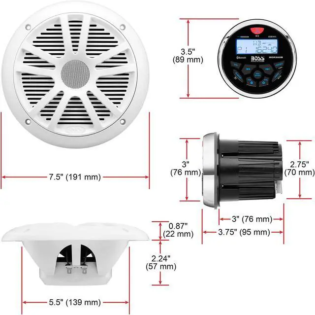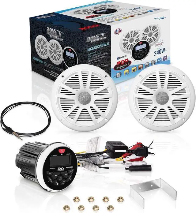 BOSS Audio Systems MCKGB350W.6 Weatherproof Marine Gauge Receiver and Speaker Package - IPX6 Receiver, 6.5 Inch Speakers, Bluetooth Audio, USB/MP3, AM/FM, NOAA Weather Band Tuner, no CD Player