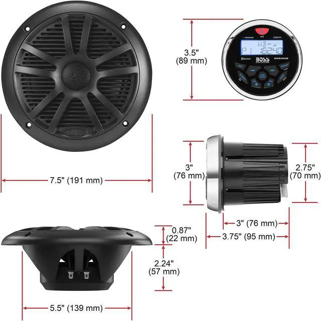 BOSS Audio Systems MCKGB350B.6 Weatherproof Marine Gauge Receiver and Speaker Package - IPX6 Receiver, 6.5 Inch Speakers, Bluetooth Audio, USB, MP3, AM/FM, NOAA Weather Band Tuner, No CD Player