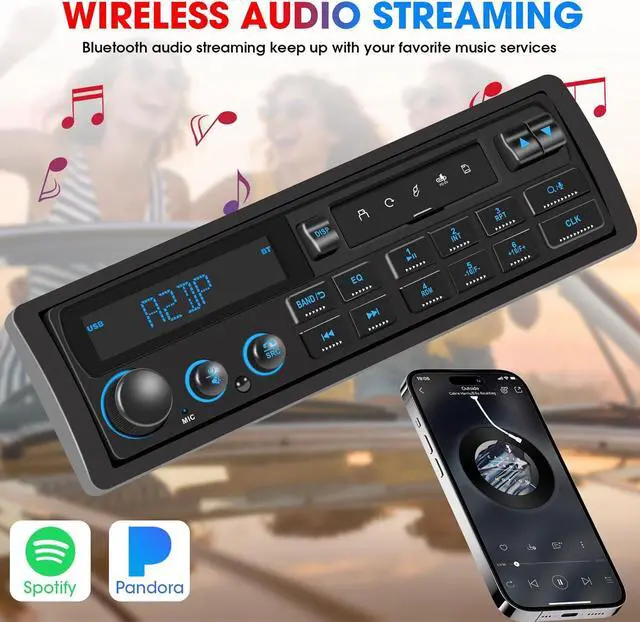 Wireless Audio Streaming: This classic car radio receiver supports bluetooth A2DP music streaming, you can enjoy every ride with Spotify and Pandora music from your phone