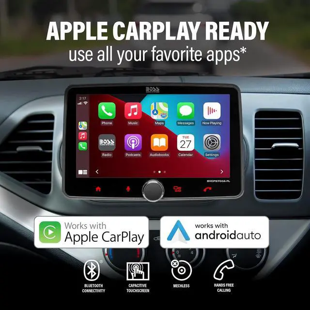 BOSS Audio Systems BVCP9700A-CFL Car Stereo System - Apple CarPlay, Android Auto, Single Din With 7 Inch Touchscreen, Bluetooth and Calling Head Unit, Radio Receiver, No CD Player, Backup Camera