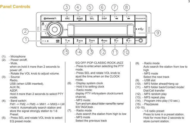 VDO Continental TR7412UB-OR European Style 12v Radio Orange Display Bluetooth Bundle with AC111