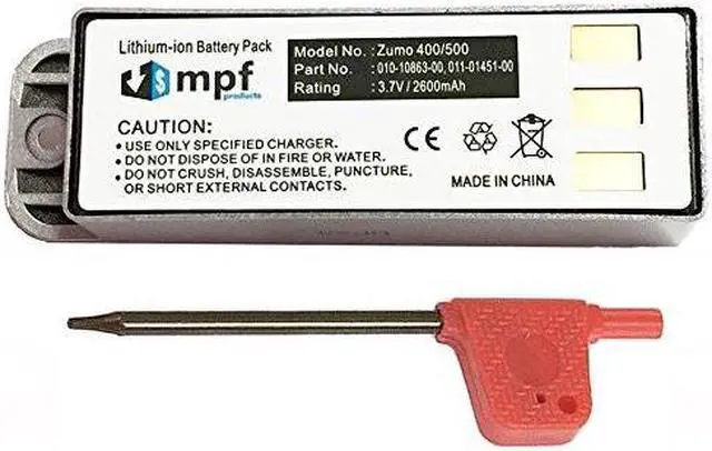 High Capacity Extended 2600mAh Battery 010-10863-00, 011-01451-00 for Garmin Zumo 400, Zumo 450, Zumo 500, Zumo 500 Deluxe, Zumo 550 Motorcycle GPS Navigators.