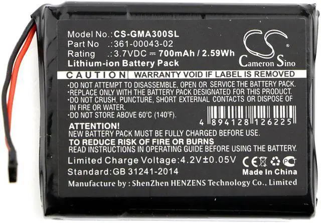 GPS Navigation Battery for Garmin 361-00043-02 010-01690-00 Approach Compatible with the following devices 010-01690-00, Approach G30 Compatible with Battery Part Numbers 361-00043-02