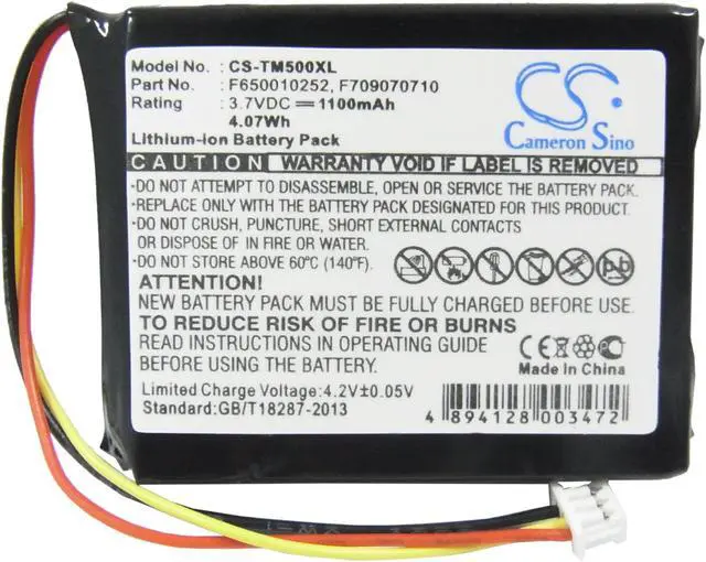 GPS Navigation Battery for TomTom F650010252 F709070710 4K 00.100 4N 00.004 Compatible with the following devices 4K 00.100, 4N 00.004, 4N 00.004. 2, 4N 00.005, 4N 00.006, 4N 00.012, 4N 01.000, 4N 01.001, 4N 01.002, 4N 01.003, NVT2B225, One, One 3rd Edition Dach, One Europe, One IQ, One IQ Routes, One Regional, One S4L, One S4L Rider 2nd, One V2, One V3, One V5, One Version 3, One XL Dach TML, One XL Europe, Rider Compatible with Battery Part Numbers F650010252, F709070710