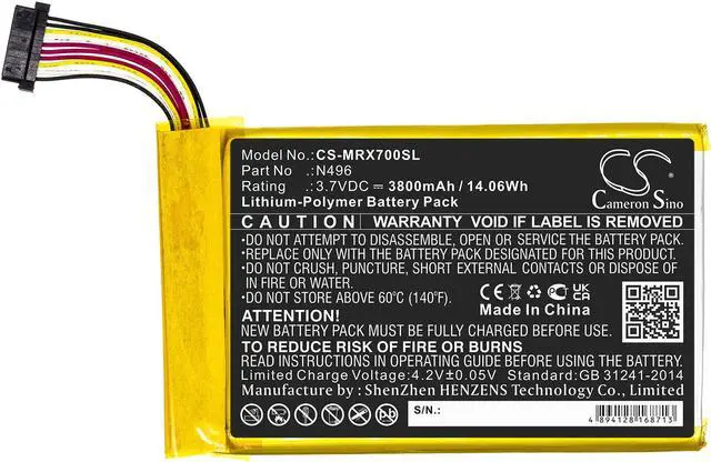 Battery Part Numbers N496 Capacity: 3.7V 3800mAh / 14.06W h