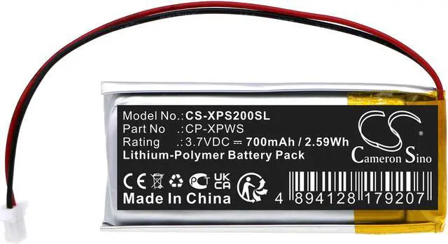 Battery Part Numbers CP-XPWS Capacity: 3.7V 700mAh / 2.59W h