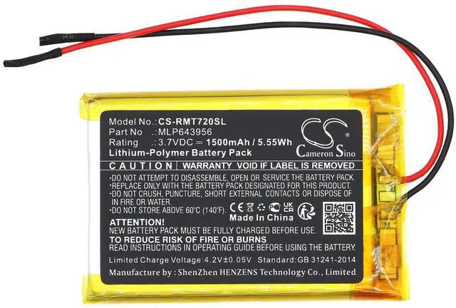 Battery Part Numbers MLP643956 Capacity: 3.7V 1500mAh / 5.55W h