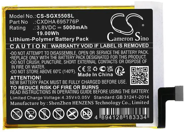 Battery for SkyGolf SkyCaddie SX550 CXDHA 695776P GPS Navigator CS-SGX550SL Compatible with the following devices SkyCaddie SX550 Compatible with Battery Part Numbers CXDHA 695776P