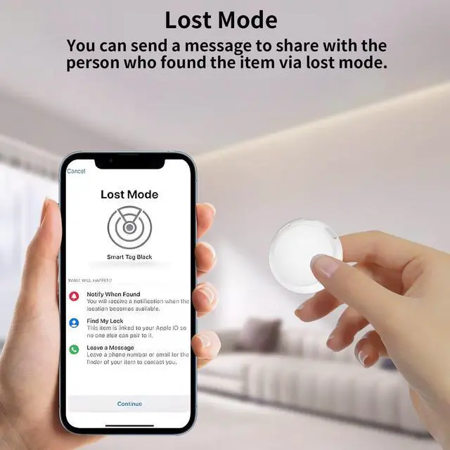 Lost Mode:Please make sure to add your phone number or email address.When someone finds your tag,he can check your contact information in lost mode