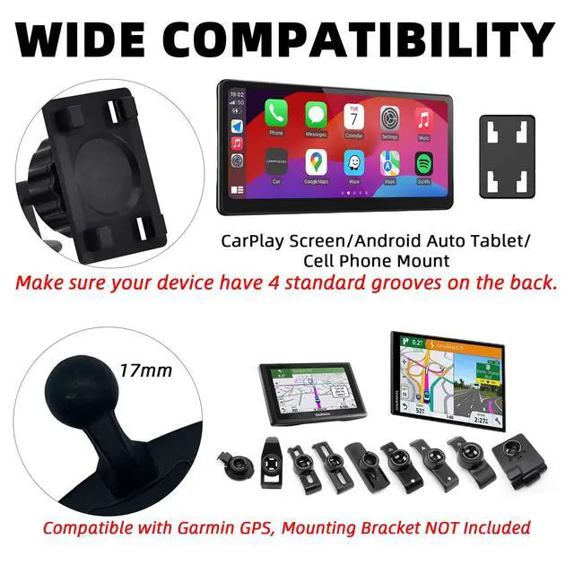 Wide compatibility with 4-11 inch Carplay screen/Android auto tablet PC, cell phones, GPS navigator and more devices. Allow 360 degrees to adjust the display angle for the the best viewing and operating, enhancing your driving experience, ensures a secure and stable mounting solution without wobbling.