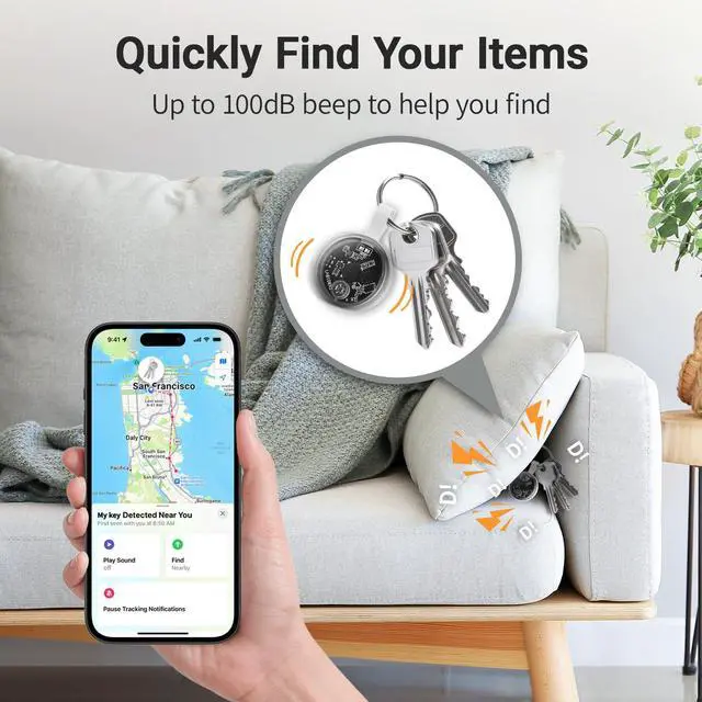 • Within Bluetooth range, you can play a sound or wake up Siri to hear the product emit a 80-100 decibel beep, helping you quickly locate the item.