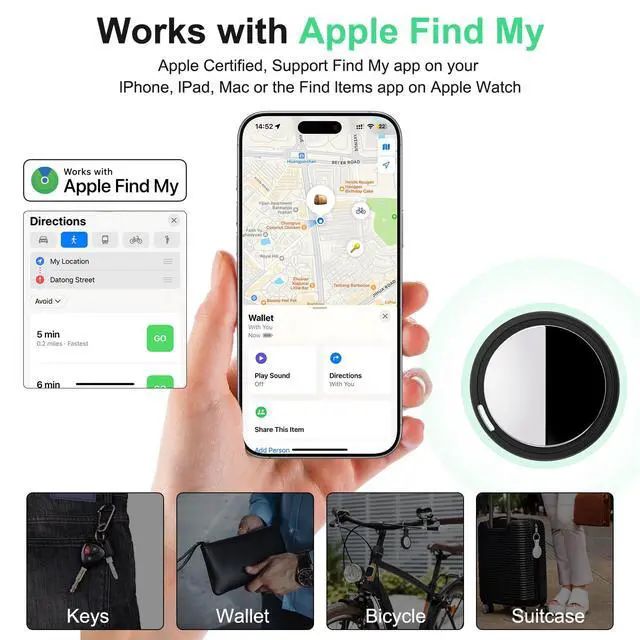 Loud Alarm & Global Tracking Capability: Features a built-in buzzer with up to 100 dB to help you pinpoint items. Locate globally via the powerful Apple Find My network whenever an iOS device is within Bluetooth range. Simply use the "Find My" app or ask Siri to make your tag ring.