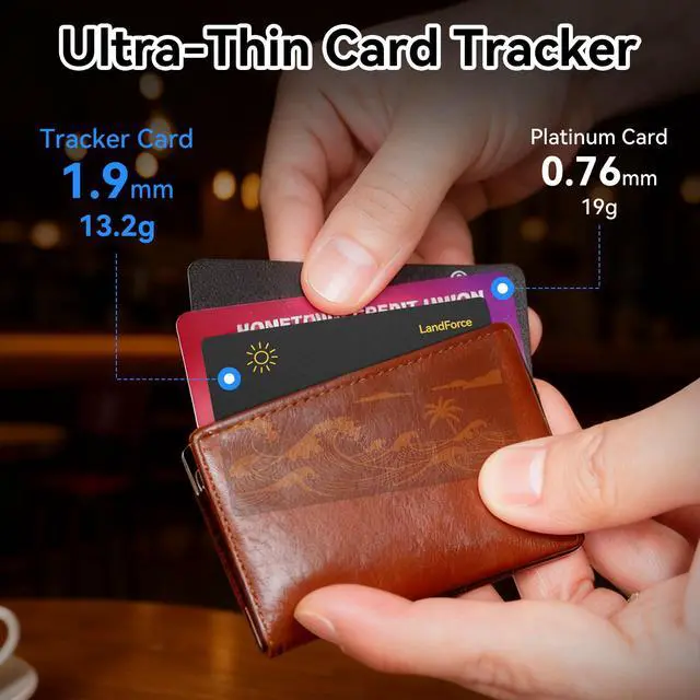 Ultra-Thin & Discreet Wallet Tracker Credit Card Thin Design: At just 0.28 inches, our tracker is as slim as 2.5 bank cards, seamlessly fitting into wallets, cardholders, and passport sleeves. Perfect for everyday carry and travel, this tracker adds zero bulk while keeping your essentials secure.