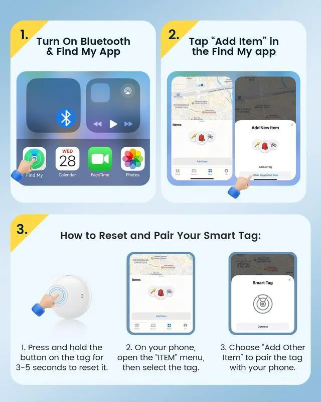 Easy Setup & Daily Tracking: Connect your Air Tracker Tag to your Apple device in one tapno extra app needed. Use the Apple Find My app to effortlessly track keys, wallets, backpacks, luggage, or bags anytime. Perfect for daily organization, commuting, or travel, it keeps your belongings easy to locate. (iOS only, not available for Android)