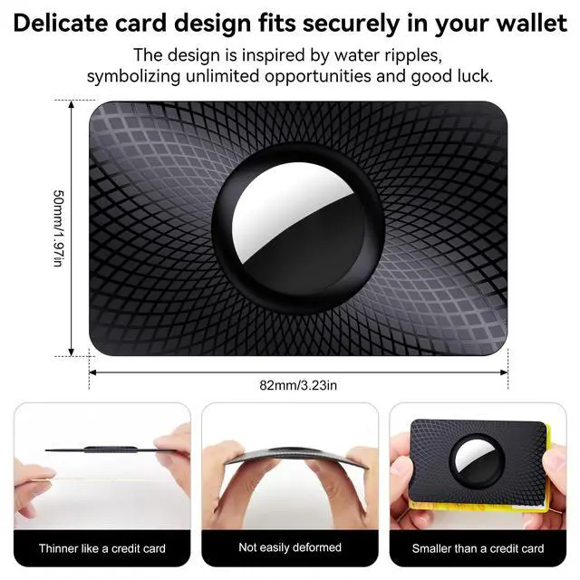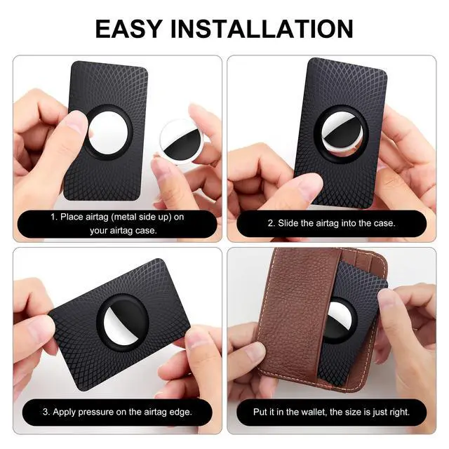 Safety and Practical: Just press the tag lightly into the Wallet Card Case, and the tag can be easily slid into the wallet like a credit card. It also keeps your wallet from getting a weird imprint, and your cards from getting bent around the tag. All in all, you don't have to worry about it being deformed or broken easily during use.