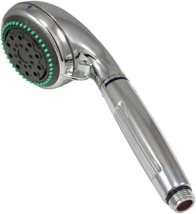 The massage 5-function hand shower is made from grade ABS construction with a polished chrome finish. The five functions of the hand shower are as follows: The show spray, pulsating massage, massage spray aeration and aeration spray. Polished Chrome Finish. High Quality Brass Construction. Clog Free Design Shower Head. Matching Accessories Available. Showerhead Flow Rate: 2.5. Showerhead Width: N/A. Showerhead Height: N/A. Showerhead: N/A. Pray Settings: 5. Spray Pattern: Full Spray, Full Spray with Massage, Fast Massage, Aeration, Full Spray with Aeration. Spray Nozzles: N/A. Finish: Chrome. Material:. Style:. Dimensions: