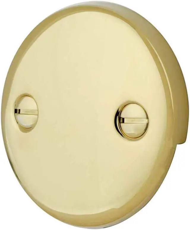 Decorate your bathroom with the smooth circular two-hole round plate. Its strong constitution of our polished-brass finish will give you long-lasting satisfaction. Polished Brass Finish. Premium Brass Construction. Heavy Duty Construction. Easy Installation. Fit Toe Touch & Twist Turn Drain.