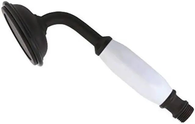 • Oil Rubbed Bronze• This bathroom hand shower features a engineered grade ABS hand grip with a 1/2" IPS inlet and a 6-7/8" body length. The shower head emits a rainfall spray function to provide a continual flow of comfort and relaxation. Fabricated in solid brass, the hand shower comes in four different finishes. (polished chrome, polished brass, oil-rubbed bronze and satin nickel)• Brass Construction• Decorative Hand Shower• Premier Finish• Vaccum Breaker Internal• 0