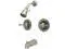 This tub and shower faucet is constructed of high quality brass to ensure reliability and durability. Its premier finish resists tarnishing and corrosion. All mounting hardware is included and standard US plumbing connections are used. Update your bathroom with this sturdy and stylish faucet.FeaturesMeets ASME A112.18.1- ANSI/NSF 61 Sec. 9 codeDesigned for a lifetime performanceFine artistic craftsmanship1/4-turn washerless cartridgeInclude two handlesHandle Type - ALFinish - Satin Nickel