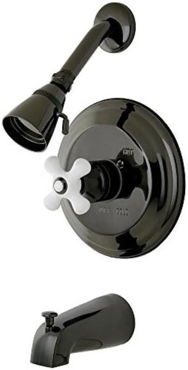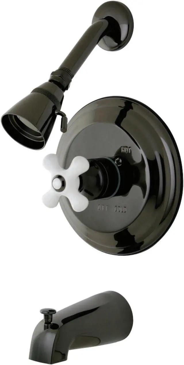Water Onyx NB3630PX Pressure Balanced Tub & Shower Faucet with Porcelain Cross HandleA perfect way to achieve that finished look is by adding this tub and shower set, Pressured balance for your safety, screwdriver stops for easy servicing and ceramic cartridge for long lasting performance, includes diverter spout. Also available in metal lever, metal cross handle, and porcelain lever handle.Durable washerless cartridgeBLACK ONYX finish meet and exceed industry requirement - ASTM B117 and ASTM B368Pressure Balanced Valve for your safetyScrewdriver stops for easy maintenanceCollection/Series: Water OnyxFinish: Black NickelTheme: Modern/Contemporary