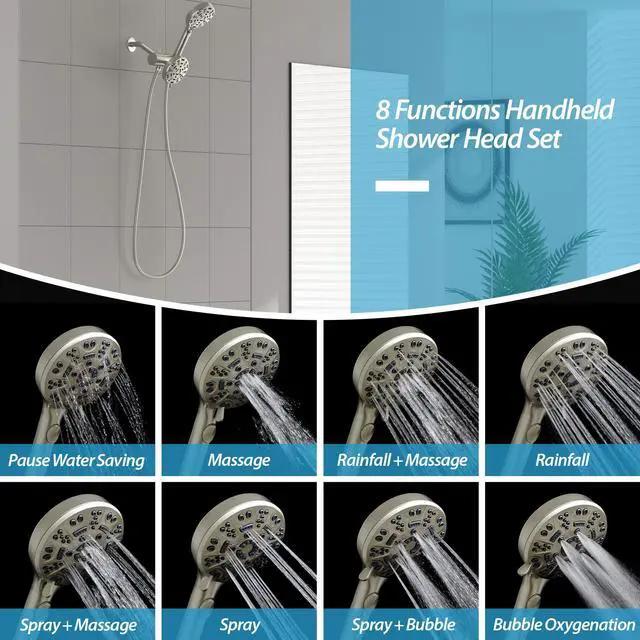 Shower has 8 Settings: rain, massage, spray and other modes. Each model has its own advantages.You can choose the shower mode according to your preferences, and you can enjoy massage-like comfort in the shower.