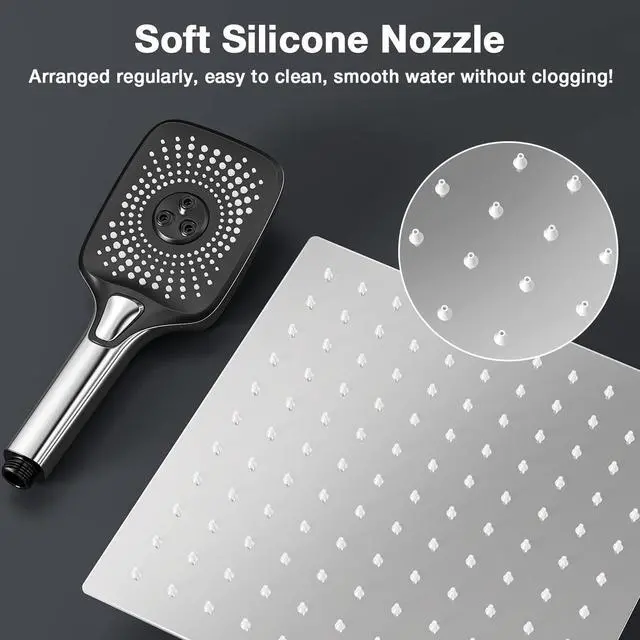 • Multi-Function Handheld Shower: 3-function rain shower head, using high-quality ABS plastic + liquid silicone nozzles, 70.8in encrypted shower hose, with bubble gasket and anti-backflow valve (you can choose whether you need to install) large handheld spray, bring you SPA-level shower enjoyment
