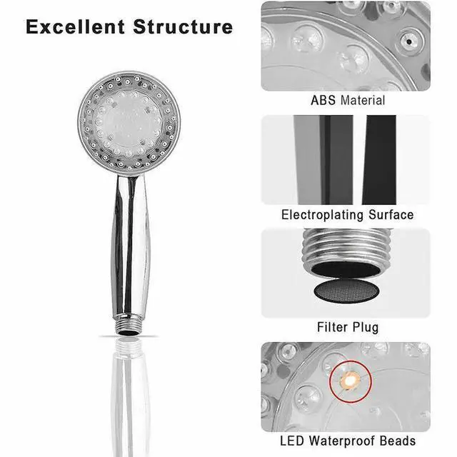 Note: Shower requires high water pressure to rotate the built-in water flow turbine generator and light up the light.