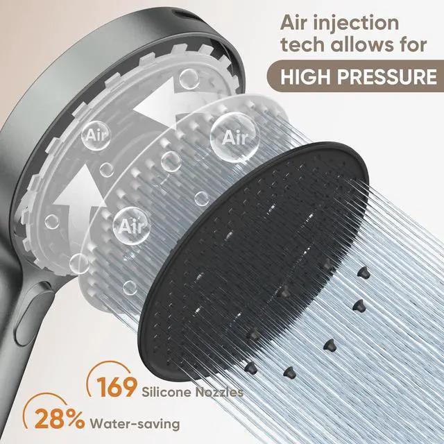 Low Water Usage]: Experience the power of our handheld showerhead, now with upgraded air injection technology that delivers the high pressure you crave. Whether you have low water pressure or not, this high pressure shower head ensures a satisfying and invigorating rinse. Easily wash away shower gel, shampoo, and conditioner in no time, all while saving more water compared to standard showerheads. Enjoy a comfortable shower without worrying about high water bills.