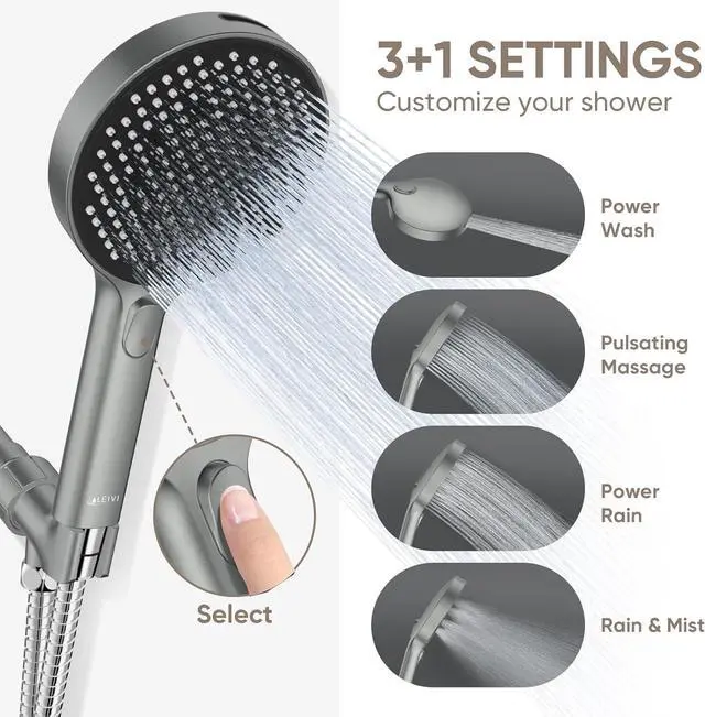 Pure Satisfaction]: Transform your shower experience with our versatile shower head with handheld featuring three unique spray modes: Power Rain, Pulsating Massage and Rain&Mist. Whether you need a soothing massage to relieve tension, a powerful rain shower to invigorate, or a gentle mist for a refreshing cleanse, this shower head offers the perfect setting for every mood. Elevate your daily routine with customized comfort and luxury.