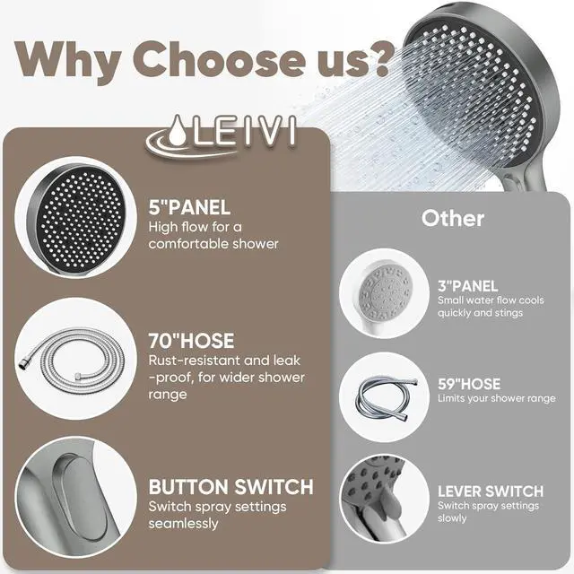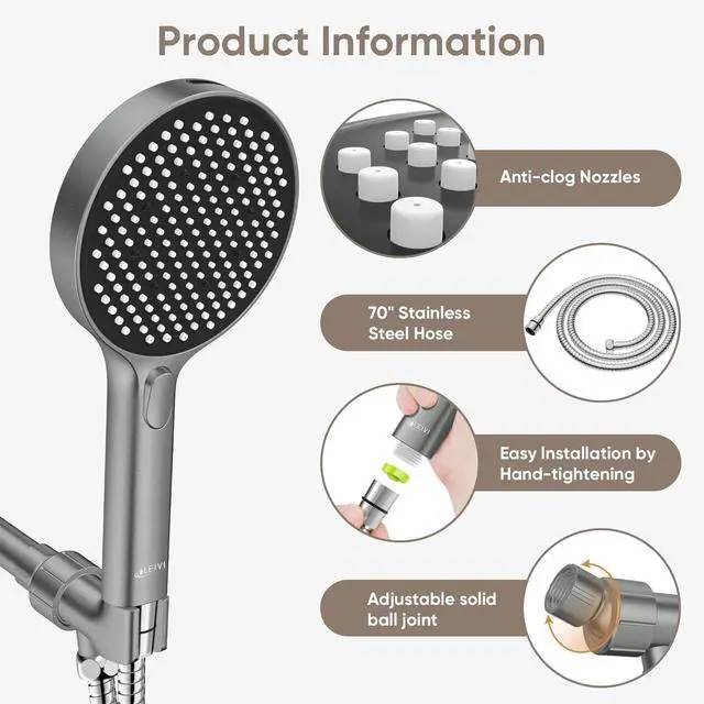 Instant Enjoyment]: No need for a plumber it' s all DIY. All accessories are included. Our shower head handheld is designed for quick and easy installation. Simply screw it onto the shower arm and tighten with your handno tools required. The universal fit ensures compatibility with most standard shower setups, so you can upgrade your shower experience in minutes. Enjoy a hassle-free setup and get ready to enjoy a refreshing new shower.
