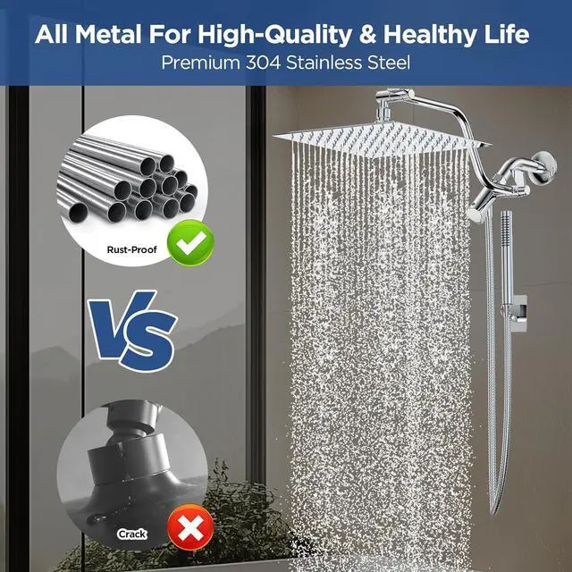 Luxurious All Metal Construction for Higher-Quality LifeDurable and premium 304 stainless steel construction offers this shower wand combo long-lasting and rust-proof performance, with no worries about the crack from plastic shower heads. The modern sleek silver finish makes it widely compatible with different bathroom decorations and gives it an elegant touch that instantly elevates the aesthetics of your bathroom