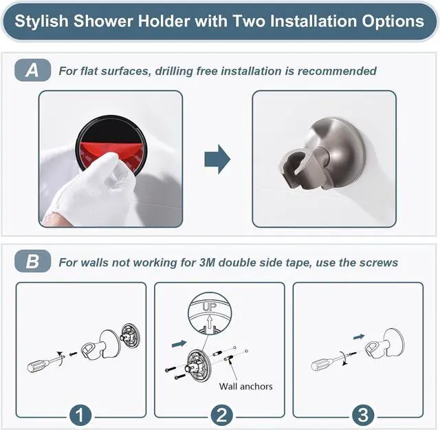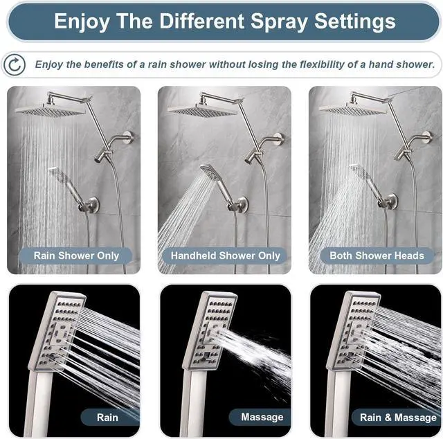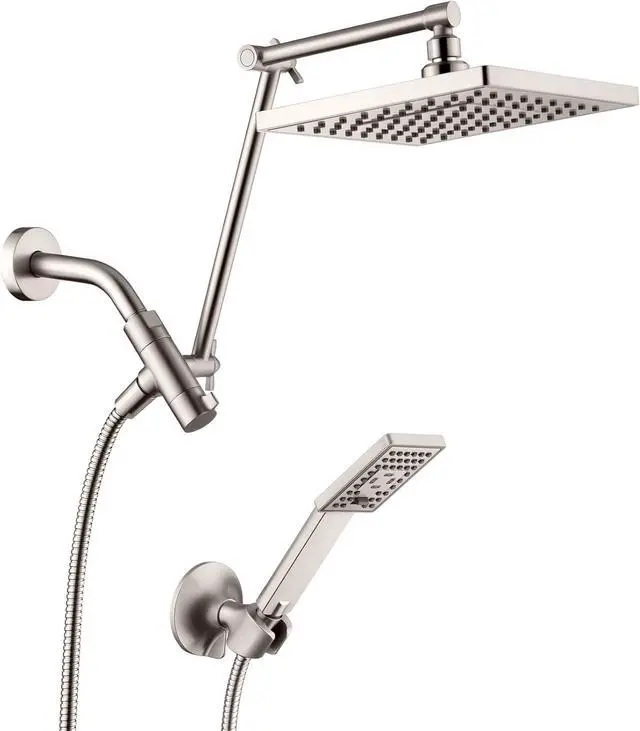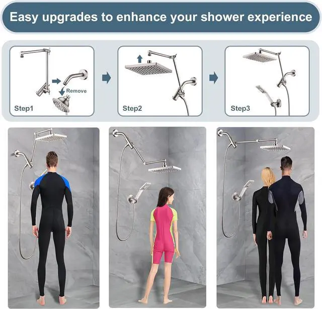 Drill-Free Installation: Upgrade your shower in minutes without any tools or drilling. Easily switch from your basic fixed or handheld shower to our sleek dual shower heads system. The modern double square design adds a stylish touch that outshines traditional combos for a truly beautiful upgrade