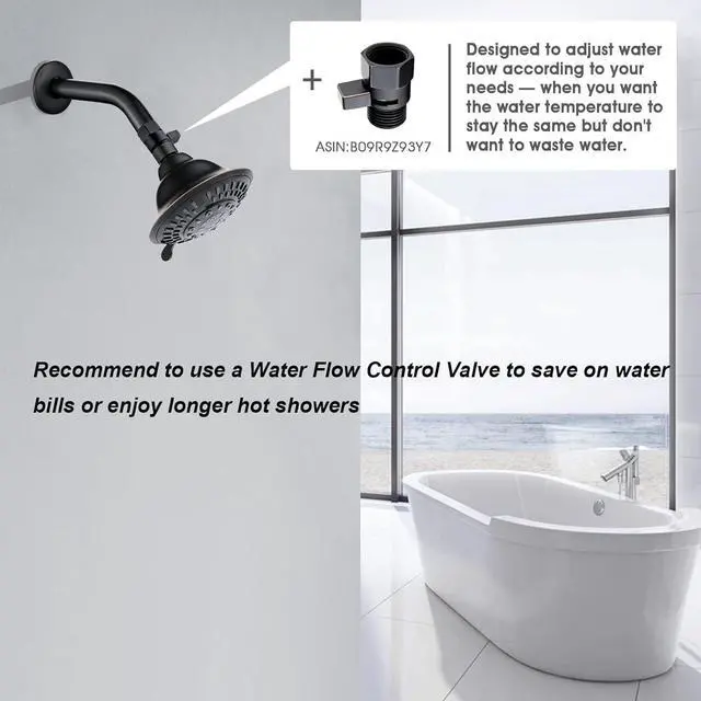 Shower: Enjoy a refreshing, full-body rinse with this 4.7 fixed shower head featuring a high pressure design and 1.8 GPM flow rate for optimal water efficiency. Choose from five versatile spray modes including rain shower head, high flow, power shower head, and water-saving options to customize your shower experience.