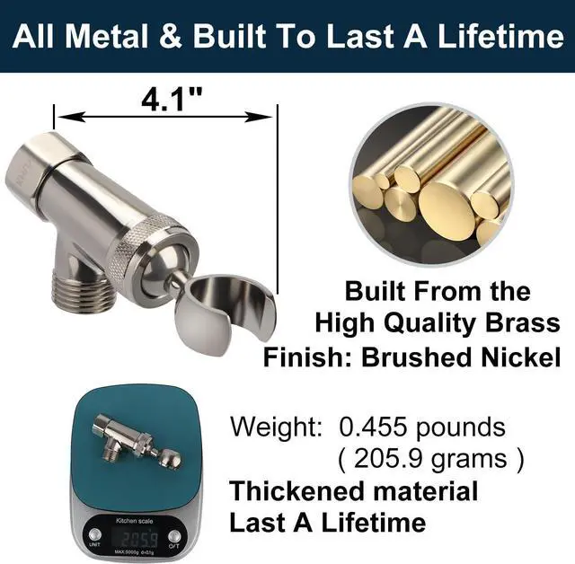 All Metal & Built To Last A Lifetime - Unlike the plastic ones that easily break and leak, Our handheld shower head is made from 304 Stainless Steel, and reinforced with Commercial-Grade Finishes ( Brushed Nickel ) that never flake or rust