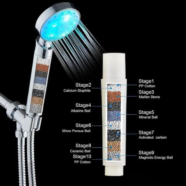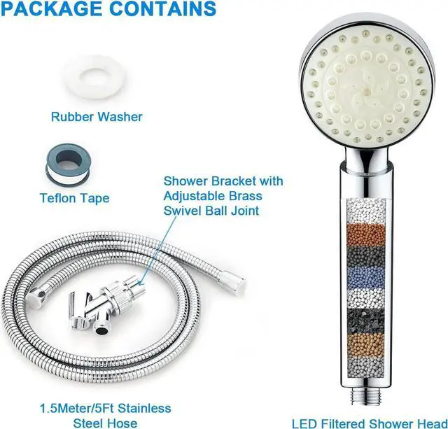 Upgrade your daily routine with KAIREYs premium handheld shower head, designed to deliver the cleanest, healthiest water for you and your family. Our powerful multi-stage filtration system combines KDF-55, calcium sulfite, activated carbon, vitamin C, alkaline balls, and maifanstone VC balls to remove 99.9 % of chlorine, heavy metals (lead, mercury, nickel, chromium), fluoride, and other harmful impuritiesprotecting your skin and hair from dryness, irritation, and damage.