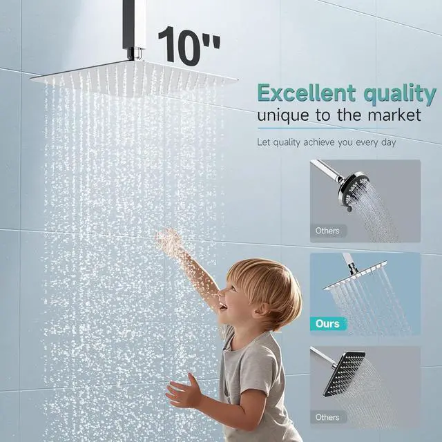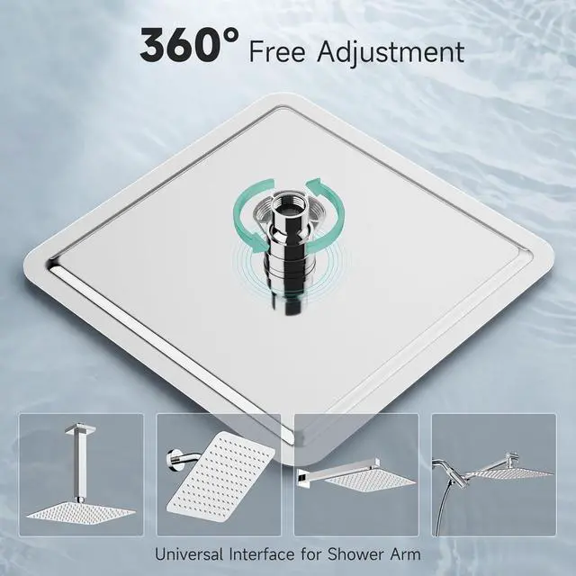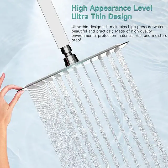 Large Rain Shower Head: The rainfall shower head with air energy technology to compensate for low water pressure situation to output water at a higher velocity, brings you full-body High pressure shower.