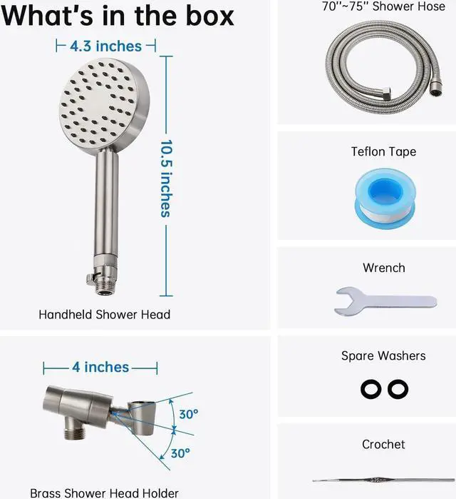 LONG FLEXIBLE STAINLESS STEEL HOSE: This hose can be stretched from 70" to 75", allows you a longer distance. It' s more convenient for you to shower, bathe your kids, your pets or clean the toilet.