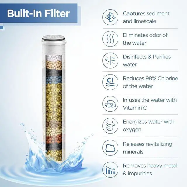 Extra Long Hose and Adjustable Brass Ball Joint: The Hopopro Dual Shower Head with Handheld Filter Combo comes with an extra-long 79-inch hose, almost 20 inches longer than normal hose to reach your feet and lower legs. The spa 3-way diverter with a adjust 360 degree metal ball joint can be adjusted to meet the shower needs of different positions, bringing you an excellent shower experience. You can easily install this filtered spa shower head combo by yourself in minutes without the help of a plumber.