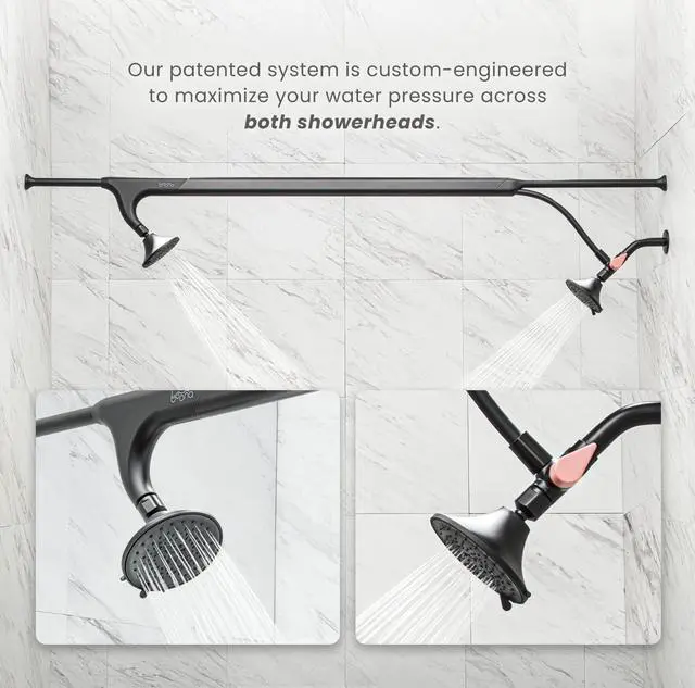 UNIVERSAL FIT - Our Tandem shower is designed to fit standard showers ranging from 56" to 75" wall-to-wall. Have a more compact setup? No problem, our adapter add-ons make it easy to install in spaces down to 45".