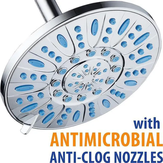 STRONG WATER PRESSURE: A clean and clog-free shower head is essential to optimal performance and powerful water pressure. Antimicrobial/anti-clog nozzles inhibit the growth of mold, mildew and bacteria inside and around jets -- ensuring a consistently strong flow of water. Our shower heads also feature rub-clean tips for easy cleaning, which helps prevent calcium and mineral deposits.