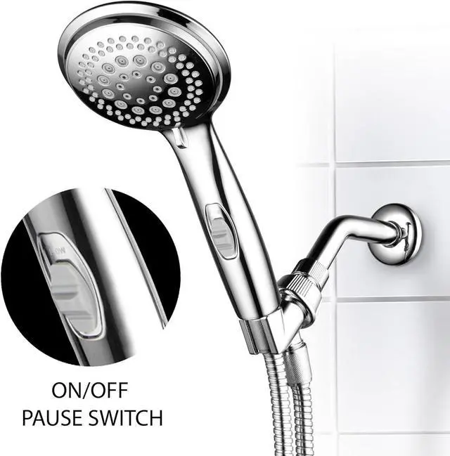Overhead Bracket with Crack-Resistant Nylon Nut for Better Sealing and Angle Adjustment Optional-Use Water-Saving Economy and Pause Modes Patented On/Off Pause Switch on Handle